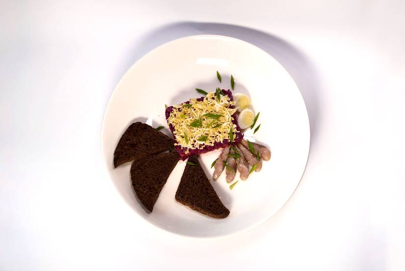 Класичний рецепт, в якому чергуються шари оселедця, відварених овочів і майонезу, утворюючи смачне і яскраве поєднання.