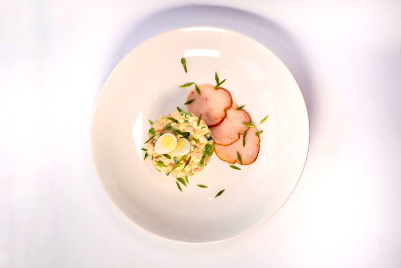 Традиційний святковий салат, з індичкою і відвареними овочами.