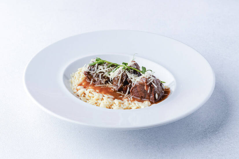 Під соусом демігляс та з гарніром на вибір: паста рисіні або картопляним пюре